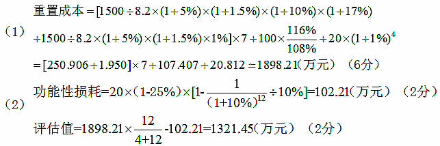 评估人员在评估中了解到,设备生产国同类设备在4年中价格上升了5%,境外运输及保险费仍为离岸价的1.5%,评估基准日该设备的进口关税税率下降至10%,增值税率仍为17%,银行手续费率也未发生变化。对国内调查得知,4年中各种费用物价指数均发生了较大变化,其中安装配套费用2004年1月1日的定基物价指数为108%,2008年1月1目的定基物价指数为116%,运杂费用价格指数自2004年起均在上一年的基础上递增1%。经对设备情况调查鉴定得知,该设备与现有同类新设备相比,每年增加运营成本20万元,今后该设备若保持100%的利用率,则尚可使用12年。评估基准日美元对人民币的汇率为1∶7,企业所在行业的正常投资回报率为10%,企业所得税率为25%。