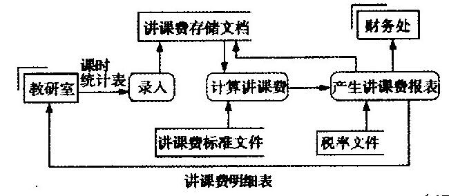 某校计算教师讲课费的过程是:各教研室交来课时统计表,先录入到讲课费存储文档,然后根据讲课费标准文件计算讲课费,再依据税率文件产生 作者:高老师 时间:2024-07-30 浏览 1 某校计算教师讲课费的过程是:各教研室交来课时统计表,先录入到讲课费存储文档,然后根据讲课费标准文件计算讲课费,再依据税率文件产生讲课费报表,并将税后讲课费计算结果返回讲课费存储文档,将报表送财务处,并将讲课费明细表返回教研室.画出处理讲课费计算的数据流程图.【正确答案】:所求数据流程图如下图所示: 📱 扫码体验刷题小程序 扫一扫使用我们的微信小程序