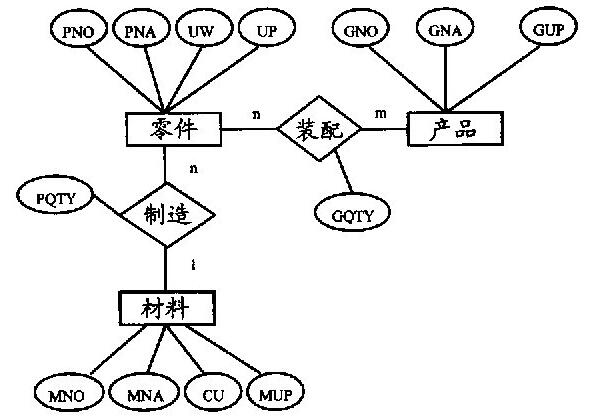 某工厂生产多种产品,每种产品又要使用多种零件,一种零件可能装在多种产品上.每种零件由一种材料制造,每种材料可用于不同零件的制作. 作者:高老师 时间:2024-07-30 浏览 2 某工厂生产多种产品,每种产品又要使用多种零件,一种零件可能装在多种产品上.每种零件由一种材料制造,每种材料可用于不同零件的制作.有关产品、零件、材料的数据字段如下: 产品:产品号(GNO),产品名(GNA),产品单价(GuP)零件:零件号(PNO),零件名(PNA),单重(uw),单价(uP)材料:材料号(MNO),材料名(MNA),计量单位(cU),单价(MUP)以上各产品需要各种零件数为GQTY,各零件需用的材料数为PQTY (1)请画出产品、零件、材料的E-R图. (2)请将该E-R图转换为关系数据模型(下划线标识主码).【正确答案】:(1)(2)E-R图转化为关系模型为:产品(GNO,GNA,GUP)零件(PNO,PNA,uw,UP,MN0,PQTY)材料(MNO.MNA,CU,MUP)装配(PNO,GNO,GQTY) 📱 扫码体验刷题小程序 扫一扫使用我们的微信小程序
