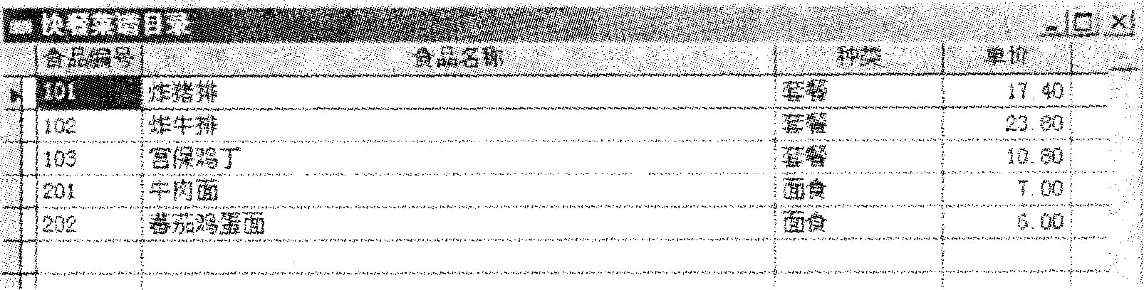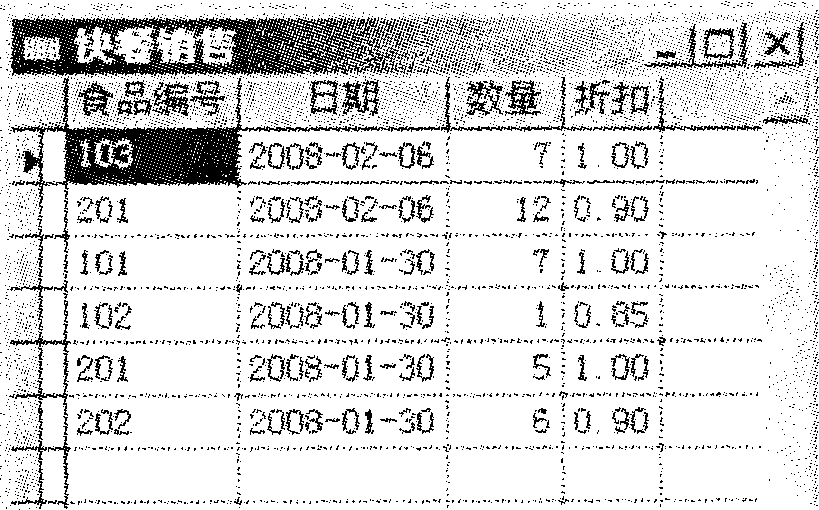 (5)向“快餐销售”数据表中添加一条销售记录;