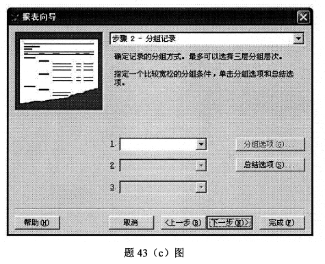 “固定资产.DBF”数据表如题43表所示,以该表为数据源使用报表向导生成报表如题43(a)图所示。 下列是使用报表向导的几个步骤(中间有些步骤略去),请结合具体使用情况完成下列各题: