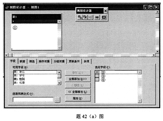 题42(a)图、题42(b)图是生成“学生成绩.VUE”的视图设计器,请完善有标号①~⑤的地方。