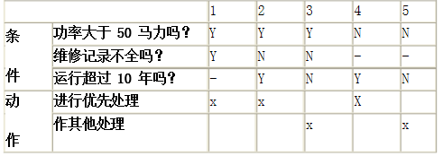某维修站对①“功率大于50马力”且“维修记录不全”或②“已运行十年以上”的机器给予优先维修,否则做一般处理。请用决策表表达此处理 作者:高老师 时间:2024-07-29 浏览 2 某维修站对①“功率大于50马力”且“维修记录不全”或②“已运行十年以上”的机器给予优先维修,否则做一般处理。请用决策表表达此处理逻辑。【正确答案】: 📱 扫码体验刷题小程序 扫一扫使用我们的微信小程序