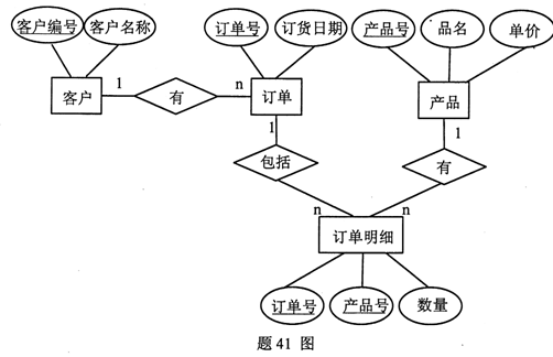 将题41图所示的E-R模型转化为关系模型,写出关系模式并注明主码。7-247 作者:高老师 时间:2024-07-29 浏览 0 将题41图所示的E-R模型转化为关系模型,写出关系模式并注明主码。7-247 【正确答案】:客户(客户编号,客户名称) 订单(订单号,订货日期,客户编号) 订单明细(订单号,产品号,数量) 产品(产品号,品名,单价) 📱 扫码体验刷题小程序 扫一扫使用我们的微信小程序