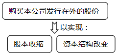 名词解释:股份回购 作者:高老师 时间:2024-07-19 浏览 0 名词解释:股份回购【正确答案】:股份回购是指股份有限公司为了达到股本收缩或改变资本结构的目的,购买本公司发行在外的股份的内部资产重组行为。【题目解析】:本题主要采分点可以这样记忆: 📱 扫码体验刷题小程序 扫一扫使用我们的微信小程序