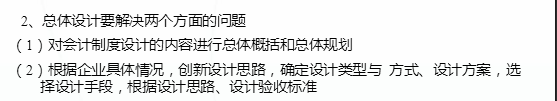 会计制度总体设计通常需要解决的问题有 作者:高老师 时间:2024-07-30 浏览 0 会计制度总体设计通常需要解决的问题有A、对会计制度设计的内容进行总体概括和总体规划B、根据企业具体情况,创新设计思路C、确定设计类型与方式设计方案D、选择设计手段,明确设计思路,设计验收标准E、对会计制度设计所需人员、经费、时间做出具体安排【正确答案】:ABCD【题目解析】: 📱 扫码体验刷题小程序 扫一扫使用我们的微信小程序