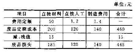 假设白云山公司生产的A产品生产过程中发现不可修复废品四件,按所耗定额费用计算废品的生产成本。其直接材料费用定额为50元,单件工时定额为100小时,每小时的费用定额为:直接人工1.2元、制造费用1.4元,回收残料15元。[要求]根据上述资料,编制不可修复废品报废损失计算表。