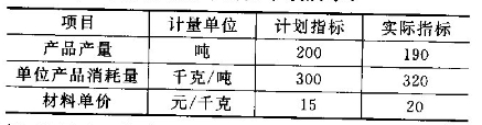 假设某企业有关产量、单位产品消耗量和单价如下表所示: