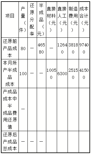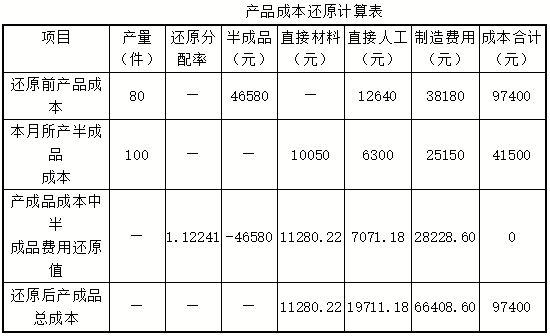 要求:填列产品成本还原计算表(还原分配率需保留小数点后五位,其余结果需保留小数点后两位,尾数差异由制造费用调节)。