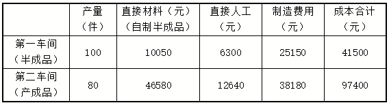 假定A公司生产甲产品,由第一车间和第二车间生产完成,第一车间生产半成品,第二车间生产的是最终产品。A公司采用平行结转分步法(综合法)核算成本。第一、二车间2005年7月有关生产成本的资料如下: