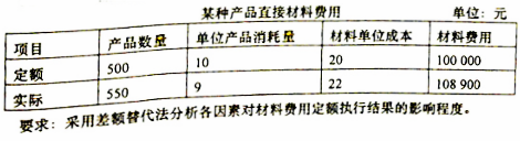 假定某种产品的直接材料费用定额为100000元,实际为108900元,超支8900元。该种产品的有关数据如下表