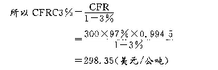 答:我方改报CFRC3%后的单价是每公吨298.35美元