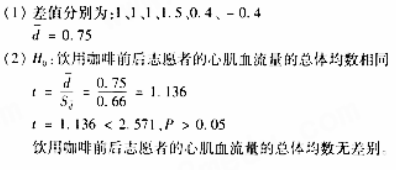 某项研究评估咖啡因对运动者心肌血流量的影响,先后测定了6名男性志愿者饮用咖啡前后运动状态下的心肌血流量(ml/min/g),数据 作者:高老师 时间:2024-08-03 浏览 1 某项研究评估咖啡因对运动者心肌血流量的影响,先后测定了6名男性志愿者饮用咖啡前后运动状态下的心肌血流量(ml/min/g),数据如下表: 【正确答案】: 📱 扫码体验刷题小程序 扫一扫使用我们的微信小程序