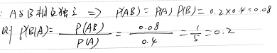 设事件A与B相互独立,P(A)=0.4,P(B)=0.2,则P(B|A)= 作者:高老师 时间:2024-08-03 浏览 0 设事件A与B相互独立,P(A)=0.4,P(B)=0.2,则P(B|A)=A、0.2B、0.4C、0.5D、0.6【正确答案】:A【题目解析】: 📱 扫码体验刷题小程序 扫一扫使用我们的微信小程序