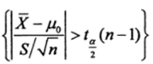 和S2分别是样本均值和样本方差,对于检验假设H0:μ=μ0;H1: μ≠μ0,当显著性水平为α时H0的拒绝域为