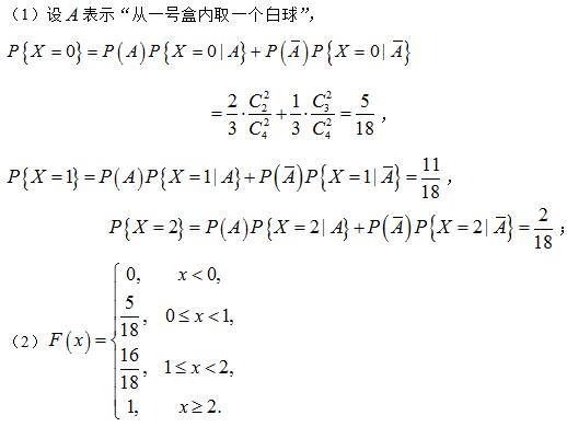 已知一号盒内有一个红球两个白球,二号盒内有两个红球一个白球,先从一号盒内任取一个球放入二号盒内,再从二号盒内任取两个球,设X为“ 作者:高老师 时间:2024-08-03 浏览 0 已知一号盒内有一个红球两个白球,二号盒内有两个红球一个白球,先从一号盒内任取一个球放入二号盒内,再从二号盒内任取两个球,设X为“最终取到白球的个数”. 求: (1)X的分布律; (2)X的分布函数.【正确答案】: 📱 扫码体验刷题小程序 扫一扫使用我们的微信小程序