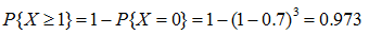 设某射手命中率为0.7,他向目标独立射击3次,则至少命中一次的概率为_________. 作者:高老师 时间:2024-08-03 浏览 0 设某射手命中率为0.7,他向目标独立射击3次,则至少命中一次的概率为_________.【正确答案】:0.973【题目解析】:设X为该射手命中次数,则由题意可知至少命中一次概率为 📱 扫码体验刷题小程序 扫一扫使用我们的微信小程序