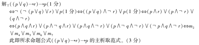 求命题公式((pVq)→r)→p的主析取范式。 作者:高老师 时间:2024-08-03 浏览 0 求命题公式((pVq)→r)→p的主析取范式。【正确答案】: 📱 扫码体验刷题小程序 扫一扫使用我们的微信小程序