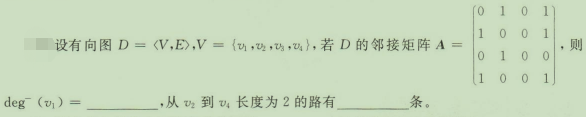 作者:高老师 时间:2024-08-03 浏览 1 【正确答案】:2;2【题目解析】:本题主要考查的知识点为图的邻接矩阵及相关运算。方法一,可以观察图求解,D的图如下: 📱 扫码体验刷题小程序 扫一扫使用我们的微信小程序