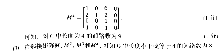 【题目解析】:长度为几的通路就是矩阵的几次方中的数相加,回路为几就是对角线相加