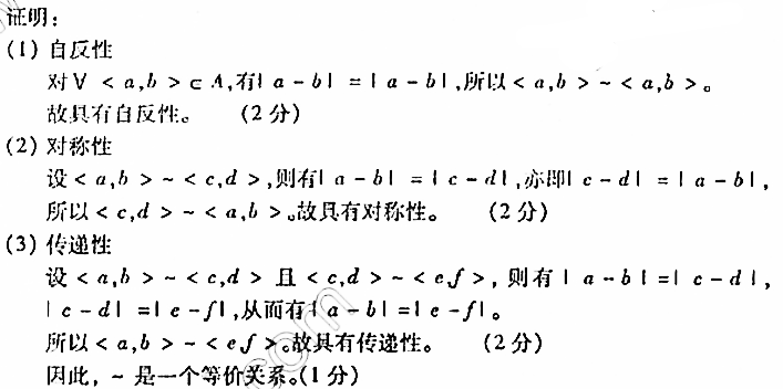 设A={la,b为正整数},在A上定义二元关系~如下:一当且仅当|a—b|=|c—d|。证明:~是一个等价关系。 作者:高老师 时间:2024-08-03 浏览 1 设A={la,b为正整数},在A上定义二元关系~如下:一当且仅当|a—b|=|c—d|。证明:~是一个等价关系。【正确答案】: 📱 扫码体验刷题小程序 扫一扫使用我们的微信小程序