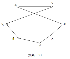 【题目解析】:如果两个人会讲同一种语言,则用无向边连接它们,得到图35-1为按题意构造的关系图;求解方案实际上是寻找图35-1中是否有哈密顿回路,该哈密顿图中每个结点的度数均为2。所以在删边时应考虑删除度数大于2的结点关联的边。由此判断:必须删掉边bf。边be必须删除,否则若保留,则结点b和e的度数已经都是2,这样只能删除跟这两个结点关联的其他边,但删除这些边后原图变成非连通图。在删除bf和be所得到的新图中,必须再删除两条边,而且要保证abce四个结点各减去1度,才能使所有结点度数为2.(1)若删除ab,则只能删除ce,才能满足条件;反之亦然。(2)若删除bc,则只能删除ae,才能满足条件;反之亦然。(3)若删除ac,则均不可能满足条件。所以,所有符合条件的方案只有2个。如图35-2为所有符合要求的安排方案。