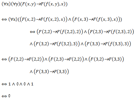 消去量词和个体变元后,就变成普通的命题公式进行赋值运算,得到给定的谓词公式的真值。