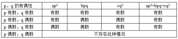 由此可见,ap2+bpq+cq2均为奇数,ap2+bpq+cq2=0不成立。所以,一元二次方程ax2+bx+c=0无有理数根。
