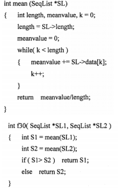 (1)若SL1->data中的数据为(13,12,23,7,-27,36,123,52,31),SLl->length=9,SL2->data中的数据为(-7,17,-23,18,37,22,41,15),SL2->length=8则调用函数f30(&SL1,&SL2)后的返回值是什么?