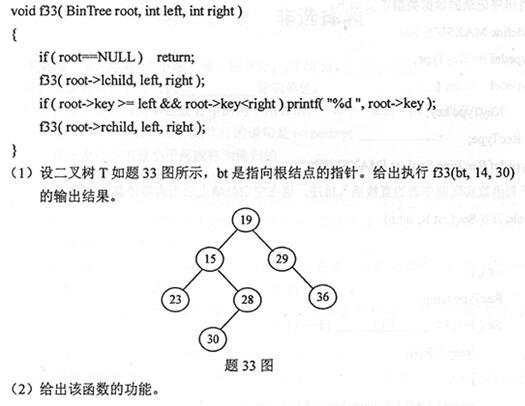 (1)23,15,28,19,29(2)按中序查找二叉树T中所有满足