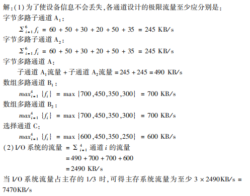 (1)分别求出各通道应具有多大设计流量,才不丢失信息。(2)设I/O系统流量占主存流量的1/3时才算流量平衡,则主存流量应达到多少?