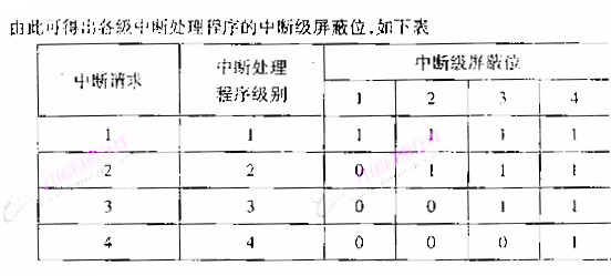 中断处理程序4屏蔽中断请求4,并对中断请求1、2利3开放。