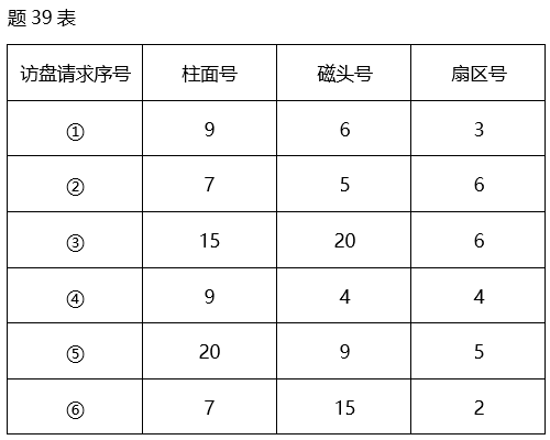 (2)对于题39表所示的6个访盘请求,写出最省时间的移臂调度方法所访问的柱面号顺序。