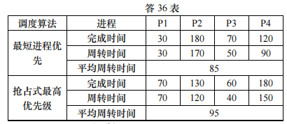 有4个进程P1、P2、P3、P4,它们的到达时间、服务时间和优先数分别为P1(0,30,2),P2(10,60,3),P3(20,40,1),P4(30,50,4),优先数小的进程优先级高,忽略I/O以及其它开销时间,若分别采用最短进程优先算法和抢占式最高优先级算法,请计算各进程的完成时间、周转时间和平均周转时间,并填写在表中(四舍五入,保留一位小数)。