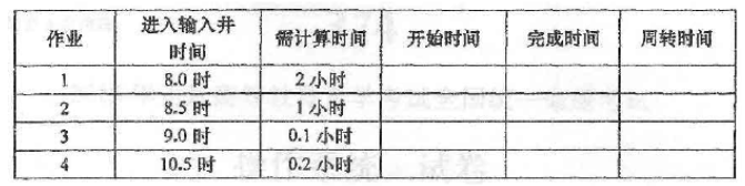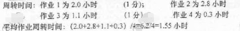 38.在单道批处理系统中,有下列表格所示的四个作业。假定作业均为计算型作业,从8.0时开始调度,并忽略一切系统开销时间。 (1)采用计算时间短的作业优先调度算法时,计算各作业的周转时间和作业平均周转时 间。 (2)采用响应比高者优先调度算法时,写出各作业被选中执行的次序及被选中时的响应 比。 将题38表绘制在答题卡上作答。