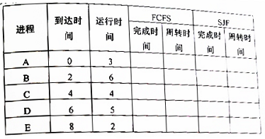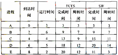 (1)请给出先来先服务算法(FCFS)和最短进程优先算法(SJF)下各进程的完成时间、周转时间?