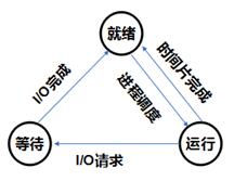 三状态进程模型中进程的状态分为运行状态、就绪状态、等待状态。进程的状态在不断的变化。进程状态转换图如下图。由图可以看到当进程时间片用完时,进程由运行状态进入就绪状态。