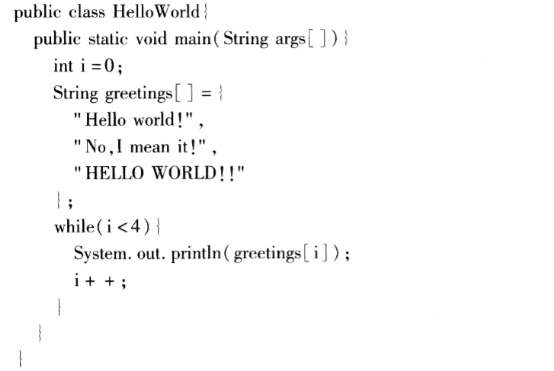 (1)该程序不能正常运行,因为数组 greetings只有3个元素,当循环体执行到第4次时会发生异常:ArrayIndexOutOfBoundsException,即访问数组时发生了越界。(2)将循环体中访问数组元素的语句:System.out.println(greetings[i]);放到ty语句中,捕获可能出现的异常并进行处理。例如做以下修改: