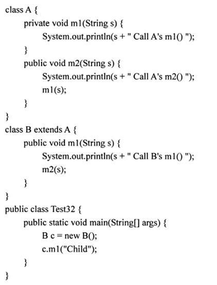 阅读下列程序,请写出该程序的输出结果。 作者:高老师 时间:2024-08-04 浏览 0 阅读下列程序,请写出该程序的输出结果。 【正确答案】:Child Call B’s m1() Child Call A’s m2() Child Call A’s m1()【题目解析】:子类继承了父类的变量和方法,在子类中包括两部分内容,从父类中继承下来的变量和方法,还有自己新增加的的变量和方法。 📱 扫码体验刷题小程序 扫一扫使用我们的微信小程序