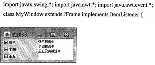 以下MyWindow类根据给定的选择项目表构造一组复选按钮,当某个复选按钮的选择状态有改变(从选中变成未选中,或从未选中变成选中)时,复选按钮的侦听程序将在右边文本区中输出所有选择项目的状态。 注:这里是给定程序的部分代码,你要编写的代码是改变复选按钮状态时所完成的事件。