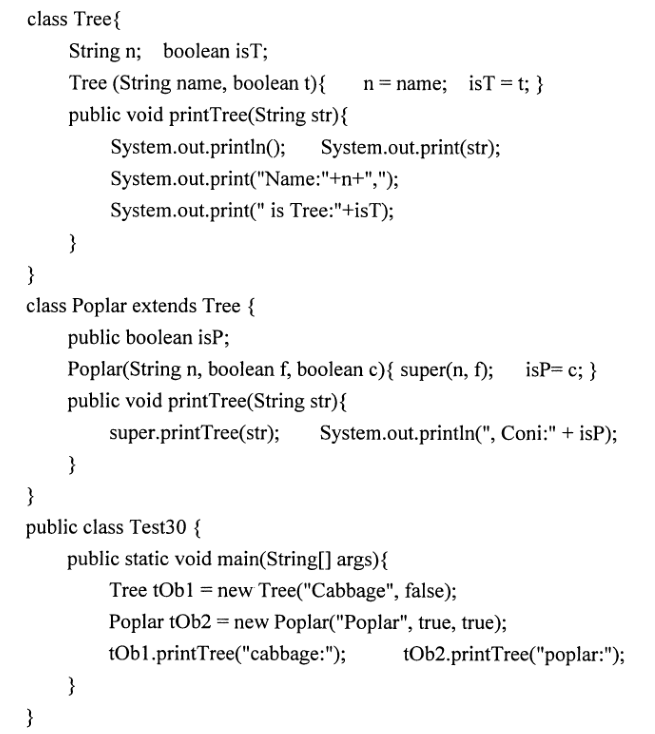 阅读以下程序,请写出该程序的输出结果。 作者:高老师 时间:2024-08-04 浏览 0 阅读以下程序,请写出该程序的输出结果。【正确答案】:cabbage:Name: Cabbage, is Tree:false(3分) poplar: Name: Poplar, is Tree:true, Coni:true (3) 📱 扫码体验刷题小程序 扫一扫使用我们的微信小程序