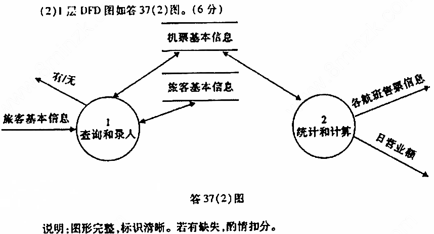 一个简化的机票销售系统需求描述如下:售票员根据旅客需要的航班,首先查询有无该航班机票。若有,则负责录入旅客的基本信息,并将指定的 作者:高老师 时间:2024-08-04 浏览 0 一个简化的机票销售系统需求描述如下:售票员根据旅客需要的航班,首先查询有无该航班机票。若有,则负责录入旅客的基本信息,并将指定的机票标志设置为售出;售票部经理可随时查询每一个航班的售票情况,并在当日结算时能计算出日营业额。请画出该系统的0层DFD图和1层DFD图(注:1层分解为查询和录入、统计和计算两个处理)。【正确答案】: 📱 扫码体验刷题小程序 扫一扫使用我们的微信小程序
