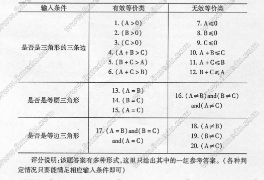 若有一个程序:输入3个整数ABC,把这3个数看作是一个三角形的3条边。这个程序要输出信息,来说明这个三角形的几种情况:是三边不等的、是等腰的、还是等边的。 请根据给出的说明,用等价类划分法完成题38表,并给每个等价类规定唯一的编号。 在“答题纸”上列表作答。