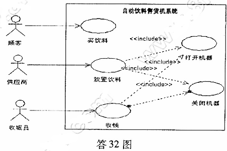 有一自动饮料售货机系统,其要求的功能如下:顾客买饮料;供应商向自动饮料售货机添加饮料;收银员,从自动饮料售货机中收钱。供应商和收 作者:高老师 时间:2024-08-04 浏览 0 有一自动饮料售货机系统,其要求的功能如下:顾客买饮料;供应商向自动饮料售货机添加饮料;收银员,从自动饮料售货机中收钱。供应商和收银员在使用自动饮料售货机时,均可打开和关闭该机器。请根据需求,画出它们的用况图。【正确答案】:【题目解析】:考点;用况图 📱 扫码体验刷题小程序 扫一扫使用我们的微信小程序