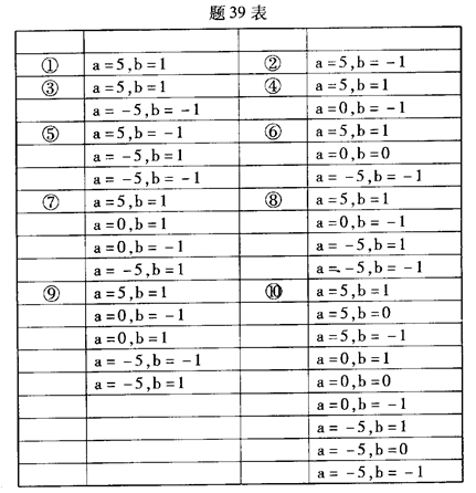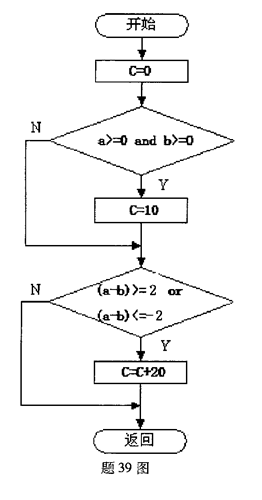 请用白盒测试法对题39图所对应的程序流程图进行测试。要求从题39表的候选答案中分别找出满足语句覆盖、分支覆盖、条件覆盖、条件组合和路径覆盖5种覆盖标准的最少测试用例。
