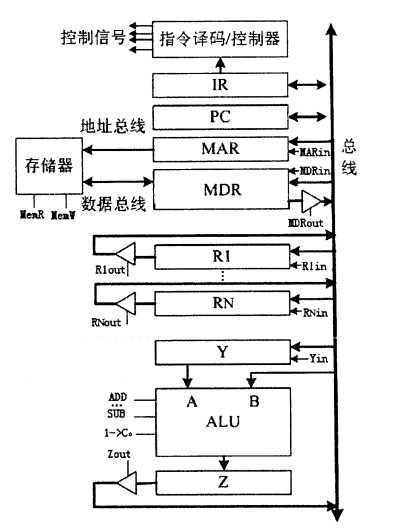 某计算机字长16位,采用16位定长指令格式,部分数据通路结构如题31图所示。假设MAR的输出一直处于使能状态,对于指令SUBR1,(R2),请回答下列两问。