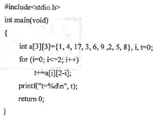 作者:高老师 时间:2024-08-04 浏览 0 【正确答案】:t=25【题目解析】:t=a[0][2]+a[1][1]+a[2][0]=17+6+2=25. 📱 扫码体验刷题小程序 扫一扫使用我们的微信小程序