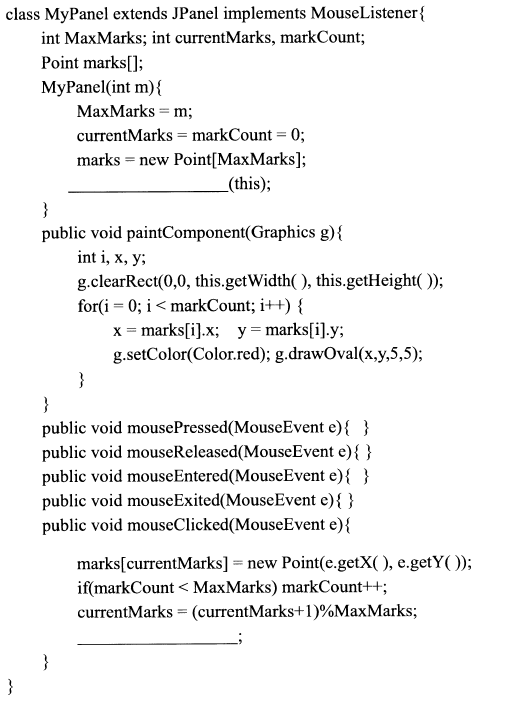 【正确答案】:addMouseListener repaint();