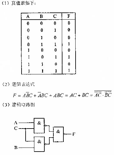 试用与非门设计一个A、B、C三个人表决电路。当表决某项提议时,多数人(两人或三人)同意,提议通过,但C具有优先否决权。(设某人同 作者:高老师 时间:2024-08-04 浏览 0 试用与非门设计一个A、B、C三个人表决电路。当表决某项提议时,多数人(两人或三人)同意,提议通过,但C具有优先否决权。(设某人同意为1,否则为0;用F表示表决结果,表决通过为1,否则为0)要求:(1)列出真值表:(2)写出逻辑表达式并化简:(3)用与非门画出相应逻辑电路图。【正确答案】: 📱 扫码体验刷题小程序 扫一扫使用我们的微信小程序