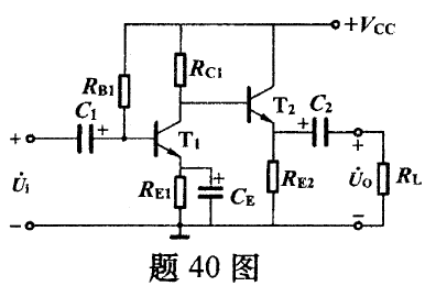 两级放大电路如题 40图所示,三极管 T1的参数β1、rbe1和T2的参数β2、 rbe2以及各电阻和电源电压均已知。各电容对交流信号均可视为短路。 要求: (1)画出微变等效电路图 (2)求电压放大倍数